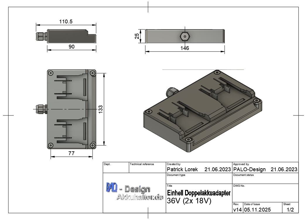 Adapter 36V (2x18V) for Einhell Power X-Change Dual Adapter Black