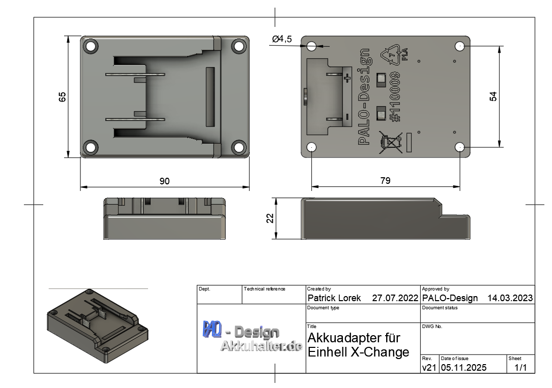 Adapter for Einhell X-Change battery 18V / 14.4V charger cradle grey