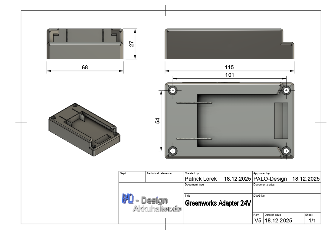 Adapter for Greenworks 24V Batteries, gray PLA+