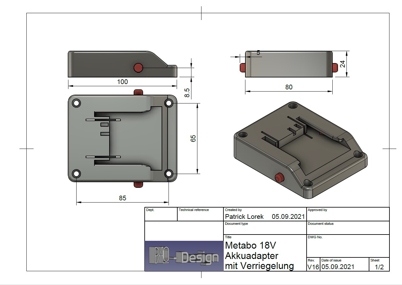 Battery adapter for Metabo CAS 18V and 36V