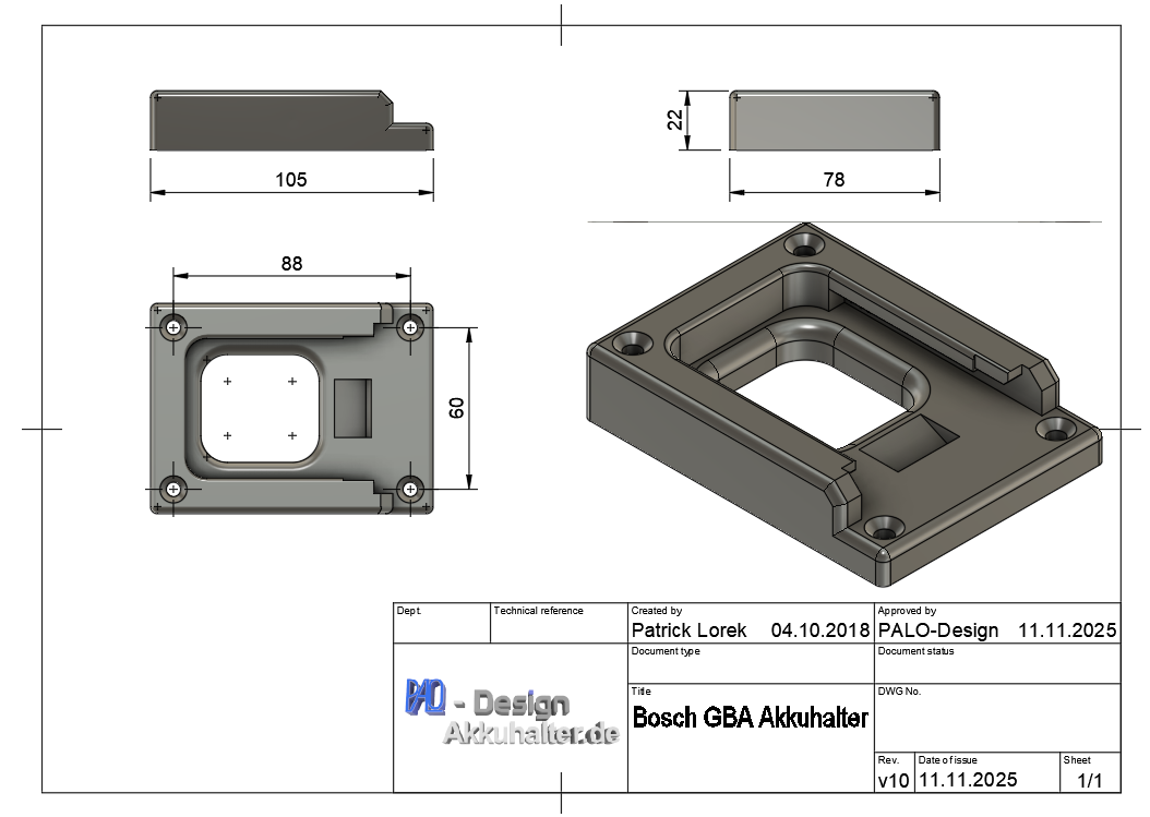 Battery holder for Bosch battery GBA 18V / 14.4V black PLA+