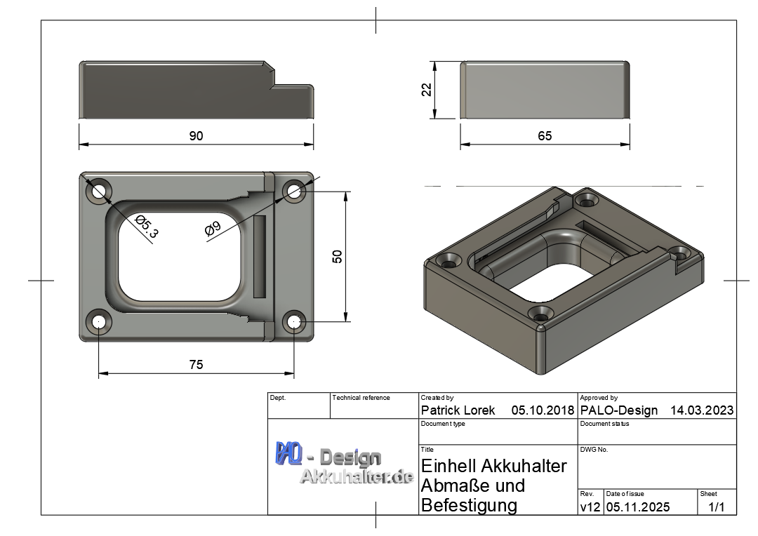 Battery holder for Einhell X-Change battery 18V / 14.4V black PLA